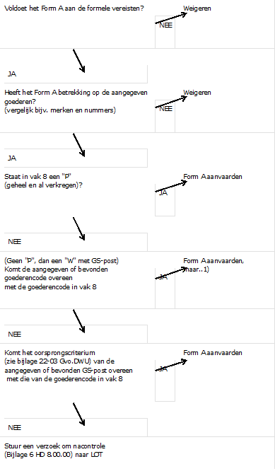 Hierna is een stroomschema aangegeven wanneer u een certificaat FORM A wel of niet kunt aanvaarden.