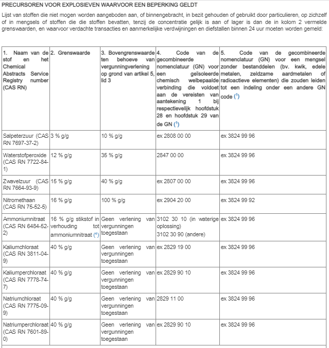 Bijlage Precursoren voor explosieven waarvoor beperking geldt